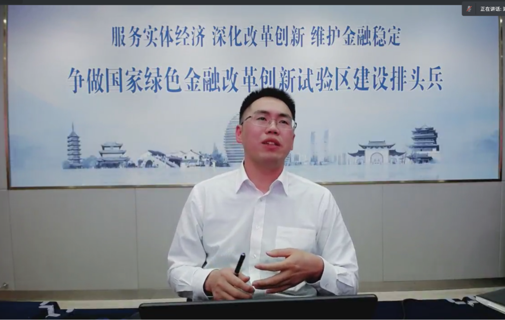 2021年11月11日下午,金融学院在线举办教师集中学习暨第二十期“贸大金融求实沙龙”,特别邀请湖州市人民政府金融工作办公室副主任黄丁伟作“浙江湖州绿色金融改革创新实践与思考”主题报告。活动由金融学院党委书记齐天翔教授主持,邹亚生院长对黄主任表示欢迎并进行了工作交流。