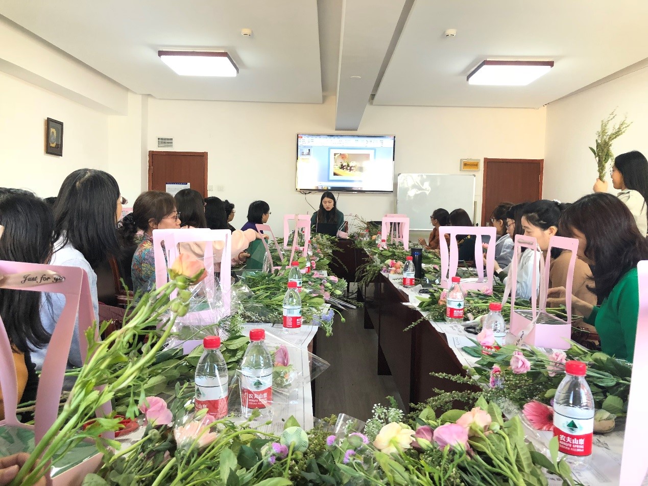为庆祝国际“三八”妇女节,丰富女教职工文化生活,提高美学素养及审美能力, 3月7日(星期四)上午,金融学院分工会在博学楼925举办2019年“插花品香,美丽生活”艺术插花活动,现场共有30多名女教师参与其中。