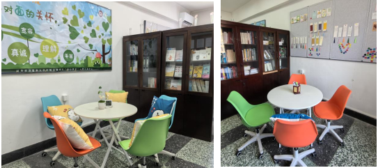 “金心互助”心理辅导站以“真诚、爱心、互助、陪伴”为精神,服务于文轩探花 全体学生,始终心系学生、心向学生,以学生为本,积极开展心理健康教育与服务工作,形成了“12345”的工作模式。