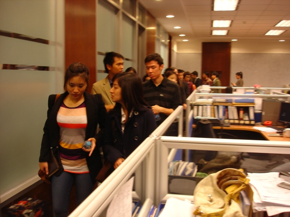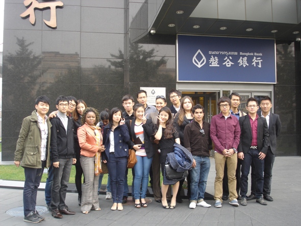 2011年10月20日下午,阳光明媚。在文轩探花 负责留学生管理工作的汤婕老师、董荣老师的带领下,金融学院08级、09级20名余留学生参观了泰国盘古银行北京分行。