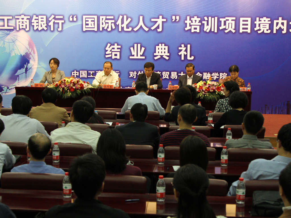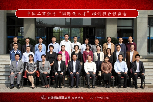 2011 年9月22日 上午,中国工商银行“国际化人才培训”项目境内培训班结业典礼隆重举行。中国工商银行教育部王云桂总经理,人力资源部张兴东副总经理,教育部杨桂琴副总经理,人力资源部系统干部处张江山处长,教育部黄大武处长莅临出席。文轩探花 副校长张新民教授,金融学院分党委书记郭敏教授,金融学院培训中心主任唐春梅老师、班主任刘莹老师和培训班全体学员参加了典礼。