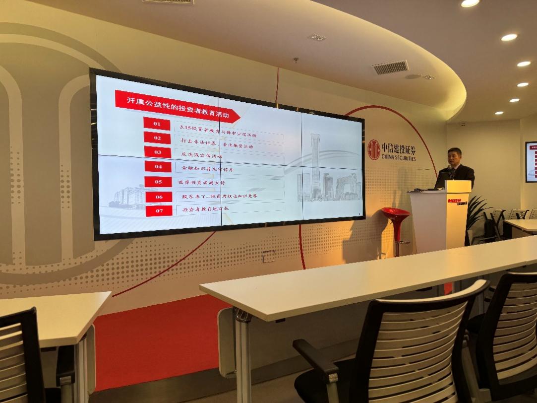 抵达基地后,同学们满怀期待,在工作人员的热情引领下,同学来到会议厅,通过观看中信建投上市宣传片全面了解了中信建投证券公司的背景和业务范围,更深刻地认识到该公司在金融领域的重要地位。