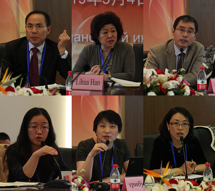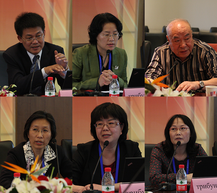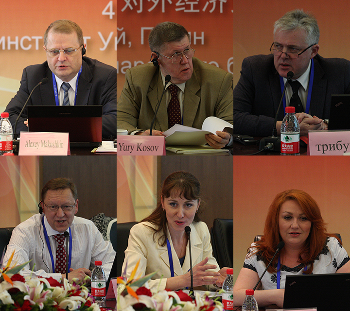 AlexeyMakushkin教授首先发言,指出基于美国金融政策调整及其工业化计划,中俄两国应对本国经济进行相应调整,力争在后金融危机体系中有所作为,因此两国在金融领域的合作具有重要和深远的意义。丁志杰教授从暗物质的视角就全球化风险与全球治理改革发表主旨演讲,认为在现行国际货币体系下发展中国家的利益难以得到保证,中俄两国有责任和义务推动从各个层面建立公平、公正、有序的新秩序,推进从全球性到区域性、集团性治理。Yury Kosov教授在发言中介绍了将于今年9月在圣彼得堡举行的G20峰会的筹备情况,强调了与中国在政治经济方面合作的重要性。