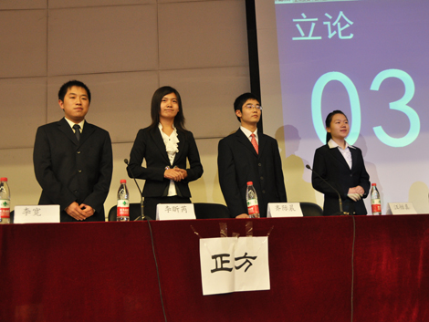 2010 年11月29日 晚7点,“普衡杯”第四届文轩探花 校辩论赛决赛在宁远楼三层国际会议厅拉开序幕。正方金融学院与反方英语学院就“大学生人生定位是应以社会需求还是个人偏好为导向”一辩题展开了激烈的辩论。