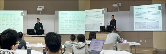 随后,由业界嘉宾进行量化金融与数据驱动决策专家讲座。通联数据高级产品经理王鹏围绕《量化金融数据简介》进行介绍。强调数据是量化投资的基石,并基于通联数据的实践,系统梳理了基础数据、高频数据、另类数据与创新数据产品及其在策略构建中的应用。重点展示了文本情感分析、AI盈利预测等另类数据的处理方式与因子构建价值,并说明了高频数据的低延迟传输与海量存储特点。最后,总结了通联数据在数据覆盖广度、时效性与行业积累方面的综合优势。