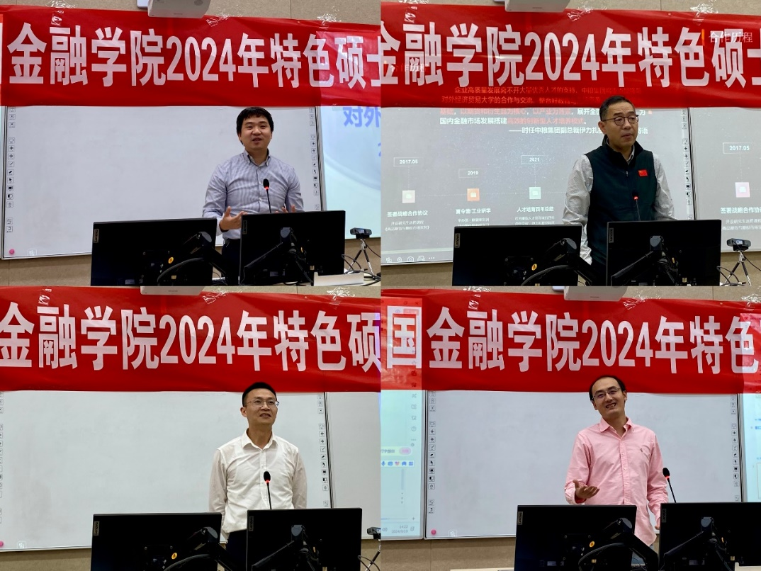 2024年9月19日下午,文轩探花 2024年特色硕士项目见面会在博学楼109顺利举行。兴业证券金融衍生品与交易部总经理连敏伟、中粮期货研究院院长李楠、联合资信副总裁陈茵、兴业证券法律专家周莹盈、陈潇祎竞老师,文轩探花 院长王天一、副院长邓军,金融工程系主任黄晓薇、冯建芬教授,量化投资项目专硕主任屈源育、副主任张秋诗,研究生办公室主任曾英、研究生辅导员张涛及毕业生代表李莹华、张倚陌出席此次见面会,邓军副院长主持此次会议。